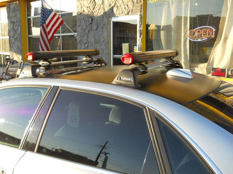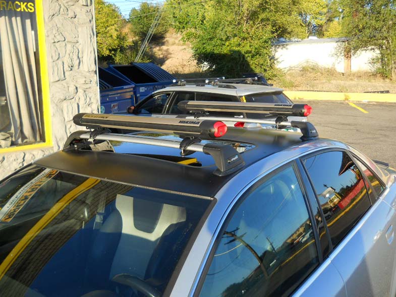 Here at Rack Attack, we pride ourselves on outfitting our customers with not only functional racks, but ones that just plain look good, too. We custom mounted a WhispBar base rack on this Audi S4 and added a Yakima Fat Cat 6 ski carrier to it as well.