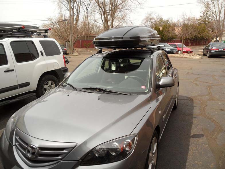 STATS:Vehicle: 2006 Mazda 3 Hatch Back with a cargo box on top! Base Rack: Thule 460R Rapid Podium Foot Pack, Thule Fi