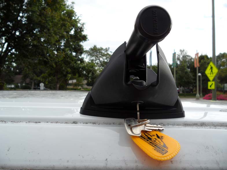 The Yakima Control Towers and the number 6 Landing Pads come in sets of just two so that doing a single bar on the cab of a pickup is easily accomplished without having to buy extra parts. Because Control Towers are so easy to remove it is important to get locks to secure the towers to your roof. Even when they're keyed, however, the Control Tower system is extremely simple to remove when not in use. So, when you're in need of an extra bar on the cab of your truck to help distribute your load, or just to give you another bar to secure your load to, call or come by Rack Attack and we can discuss your options. Until next time, Rackies!