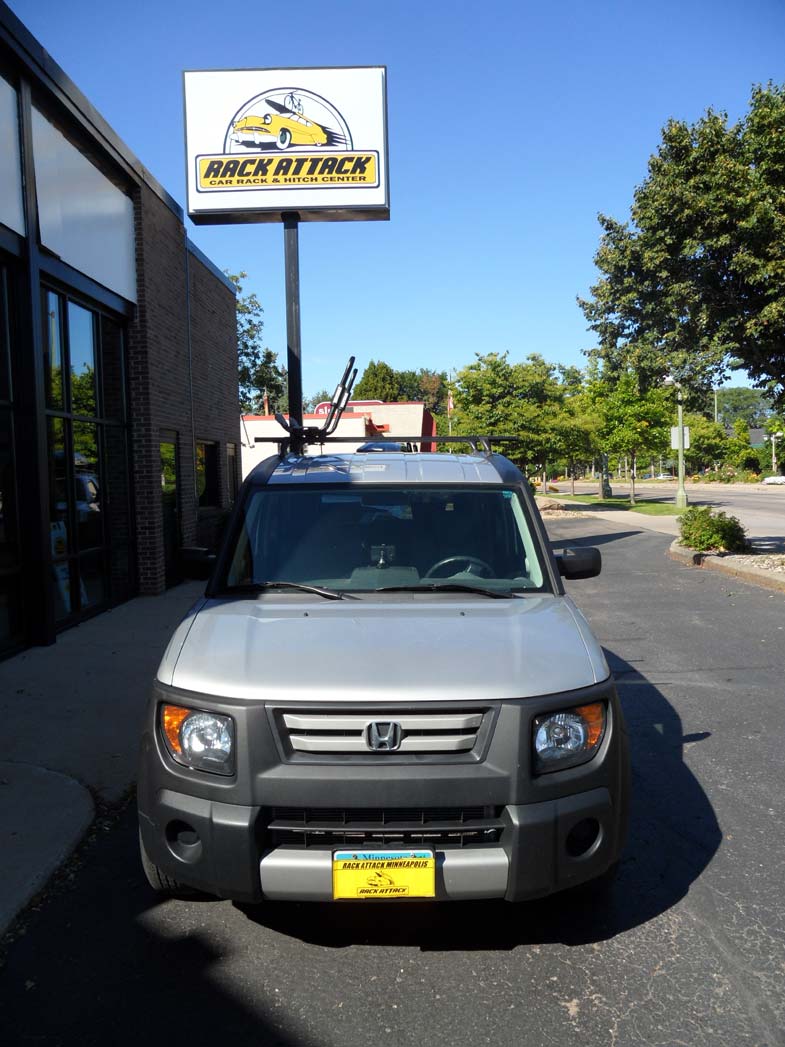 Say howdy to this kayak-ready Honda Element, the quickest rack installation in the Wild mid-West. That's right, this six-shooter is quick on the draw, and thanks to the Element's accommodating roof mounts--and Yakima's Landing Pad 9, Control Towers and 58" Crossbar--the rack is strong, stable, and versatile. The Element comes equipped with roof mounts built in, so it's as simple as removing a faceplate and screwing the Landing Pad in place, attaching the bars, and snapping the towers into place. Then you and your gang can ride out in style.