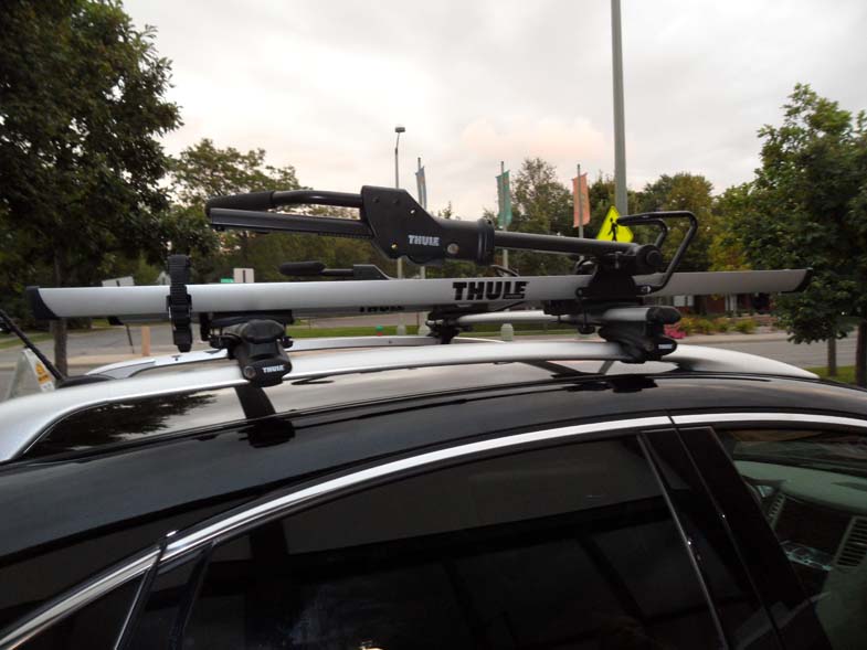 After briefly considering the options he went for the obvious choice for his Infiniti FX35 SUV with factory side rails, Thule Rapid Crossroad towers (AKA Thule 450R towers.) The Thule Aero bars' sleek design complement this fine vehicle's aerodynamic features and the cool design makes any vehicle look like something out of the next century.