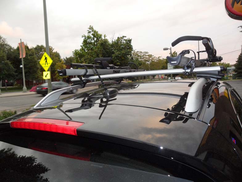 Since this Rackie was looking to mount a couple of high end bikes on his roof he decided on the Thule Sidearm bike carrier in order to provide the greatest amount of stability with minimal impact on the bike itself. The aluminum trays ensure the carrier will remain rust free even if exposed to inclement weather, and with two locks per carrier the security of your bikes is almost guaranteed.