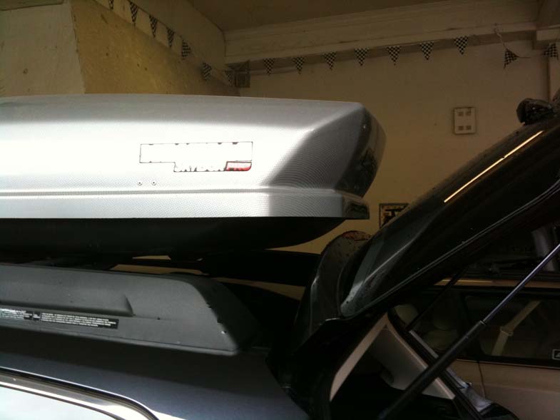 We've had many customers show up at our doorstep with their new 2010 Subaru Outback and their OLD luggage box (usually around 90" long) that does not clear the hatch/spoiler. ie: customer below that had a old Packasport 90 they wanted to use - and could not.